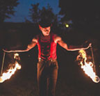 A circus performer from the day she was born into her family name. From the world of dance and movement she found her true calling when she discovered flame. Rebecca wears a great many hats for Circus Orange and finds joy in combining the multiple disciplines of all the human resources in the company to create large-scale ensemble works of art.