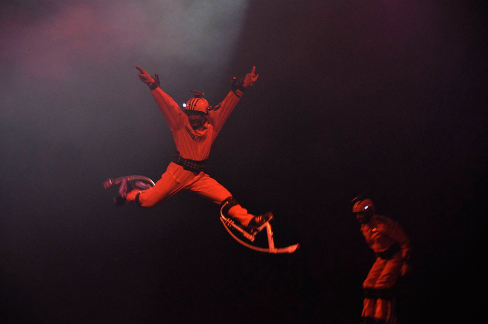 CIRCUS SPECTACLE is a 50-minute stage show incorporating high-level circus acts with dance, fire, music and pyrotechnic effects. The show flows seamlessly from act to act and paints a dramatic picture of celebration through the passionate and explosive performance on stage and in the sky above. It is our longest running, most popular and diverse spectacle production we have. It is a great way to sample the many flavours that we offer at Circus Orange!