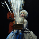 The window washer act flowed seamlessly into the 5-minute long high-elevation pyrotechnic main event. The start of this set was signified by pulsing pyro strobes from all along the Rideau Canal. Soon 300' high comets, mines and crossettes were shooting skyward in perfect sync to the music playing to the audience inside the building. We really wanted to have a human performance element right through our entire show so we added in our human powered pyro wheel right in close to the glass with our aerialist inside. This was suspended by an industrial crane but the appearance to the audience was that of a floating orb of pyro with our aerialist at the epicentre. As she performed in the wheel effects fired outwards creating one of our signature effects. This combined with the high elevation pyrotechnics from below made for a truly stunning close to the night's festivities.